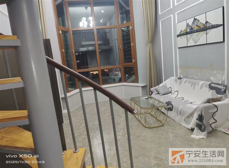 复式精装修,配有电视,冰箱,全自动洗衣机,空调,大落地窗,俯瞰宁安**好江景,室内温暖干净,