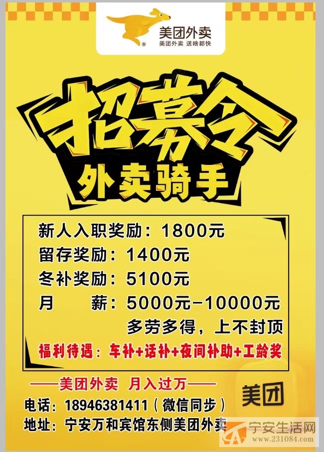 宁安美团外卖招聘